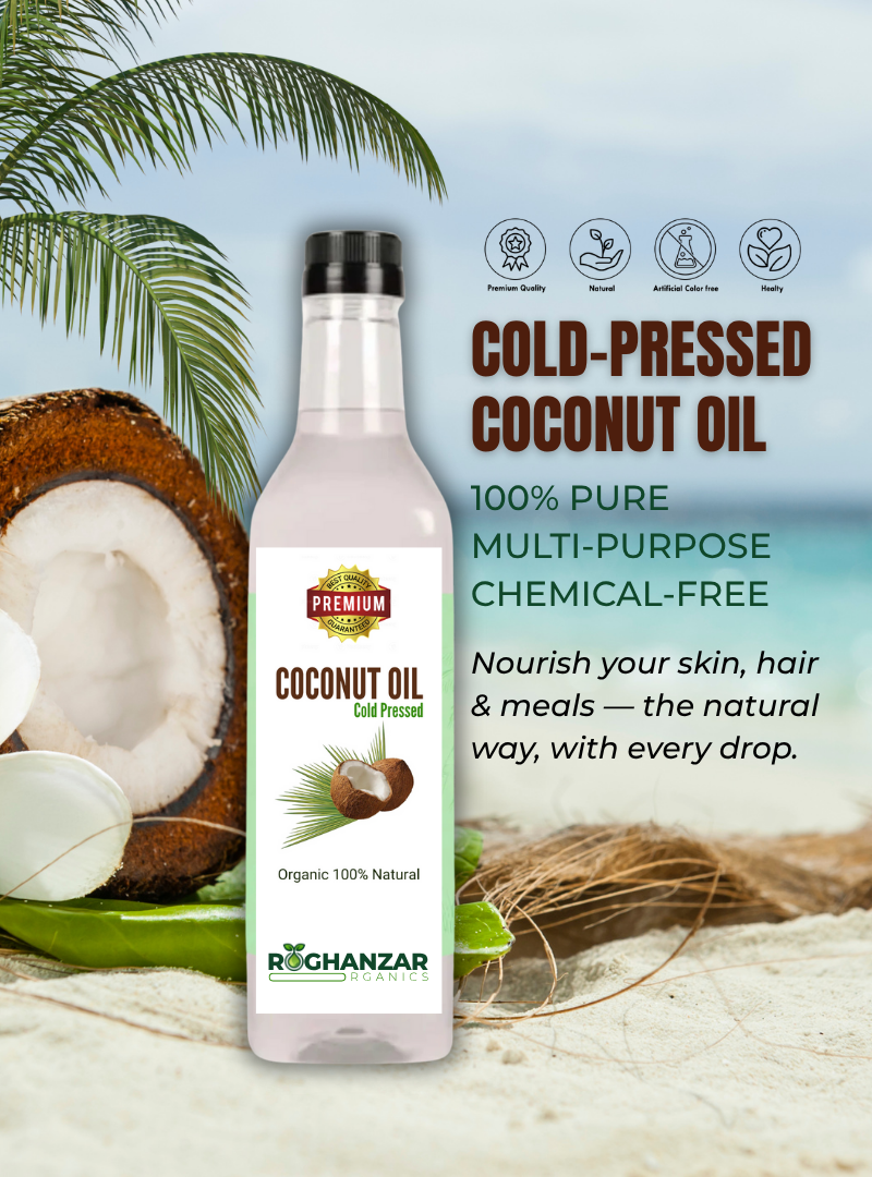 Roghanzar Organics Premium Cold Pressed Coconut Oil – 100% Pure & Natural